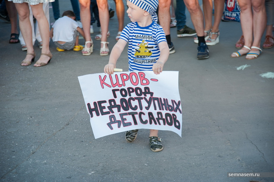 В Кирове 1 августа на площадке у филармонии состоялся пикет, на котором жители города потребовали от властей решить проблемы с нехваткой мест в детских садах. На него обещали прийти чиновники, чтобы объяснить ситуацию людям, но в итоге от мэрии города никто так и не выступил. О чем говорили на пикете — в репортаже «7x7».