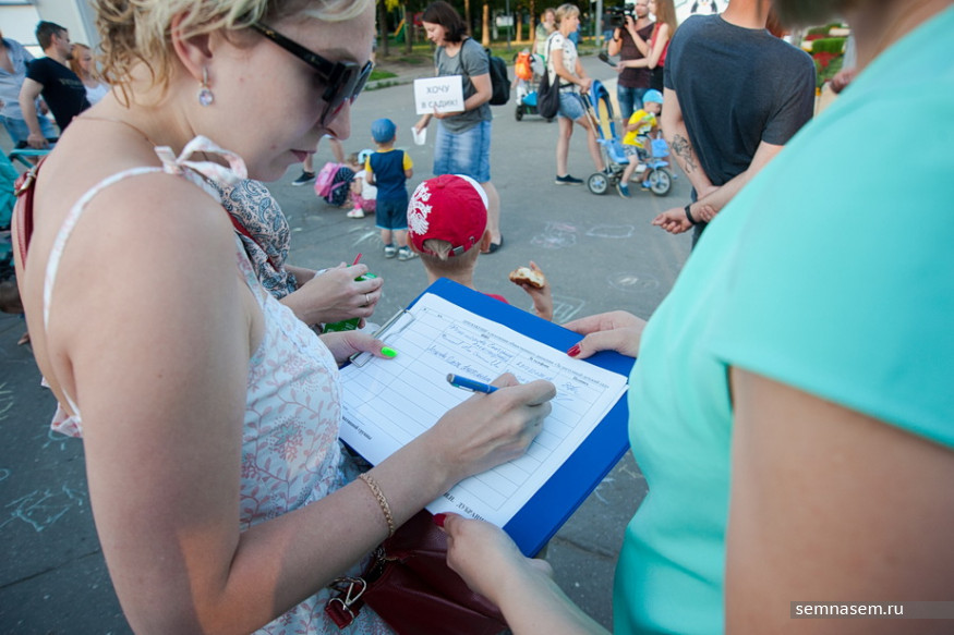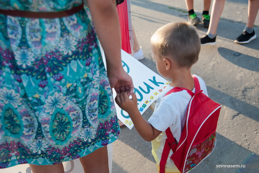 Не все пришедшие на пикет слушали выступающих, за основной толпой стояло несколько семей, чьи дети рисовали на асфальте. Никто из них не ходит в детский сад. Один из детей — Кирилл — сказал, что и не хочет туда ходить.