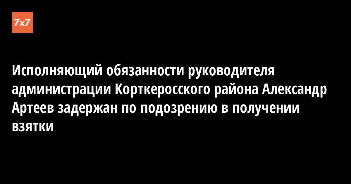В отношении исполняющего обязанности руководителя Корткеросского района Александра Артеева возбуждено уголовное дело о получении взятки. Подозреваемый задержан, в отношении него решается вопрос о мере пресечения, — сообщила 2 августа пресс-служба следственного управления СК РФ по республике.