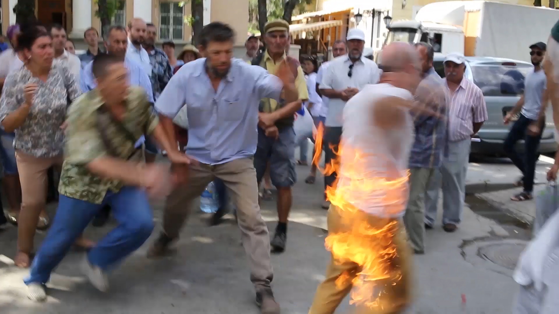 В аннексированном Россией Крыму один из протестующих против возведения микрорайона "Крымская роза" на месте самостроя поджег себя в центре Симферополя. https://t.co/tOxAETMeYr pic.twitter.com/YJRBOHOFeU