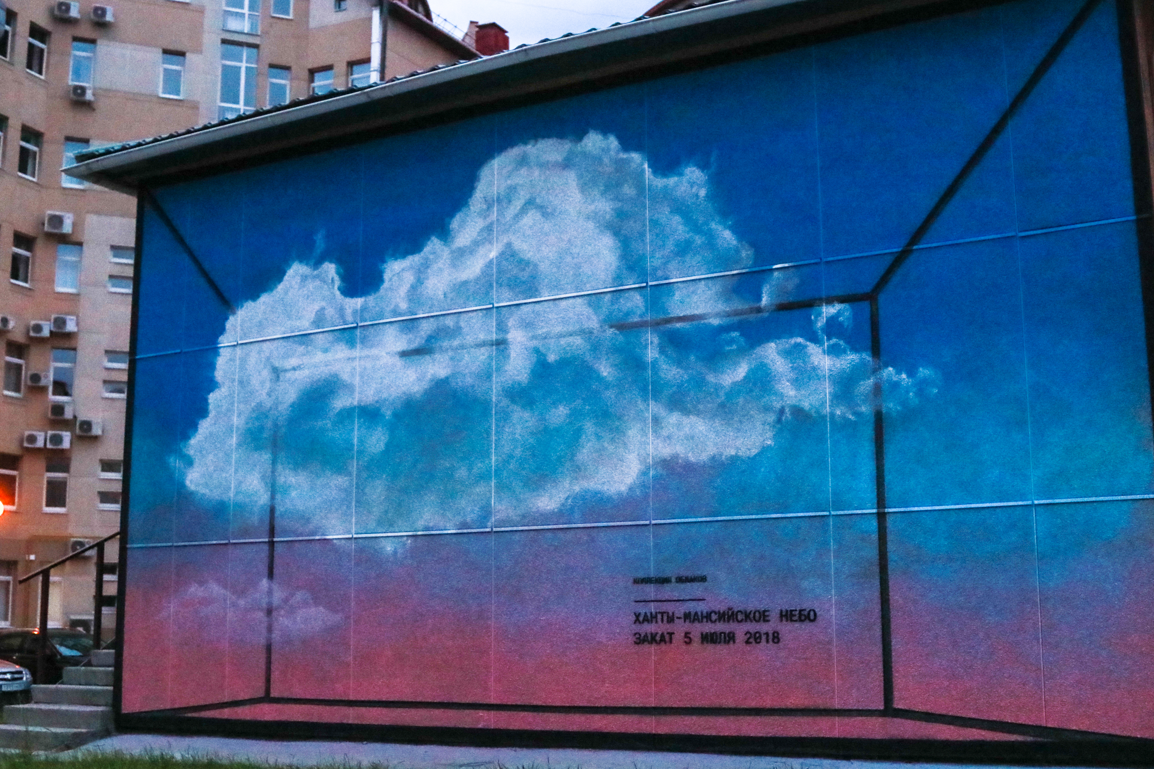 На электрической подстанция в одном из центральных дворов художники нарисовали кусочек ханты-мансийского неба. Подпись гласит: "Закат 5 июля". Украсить неприметное здание другой подстанции предложило муниципальное предприятие "Городские электрические сети". Красный кирпич постепенно превратился в зеленый холст, на котором уже виднеются очертания будущей картины.