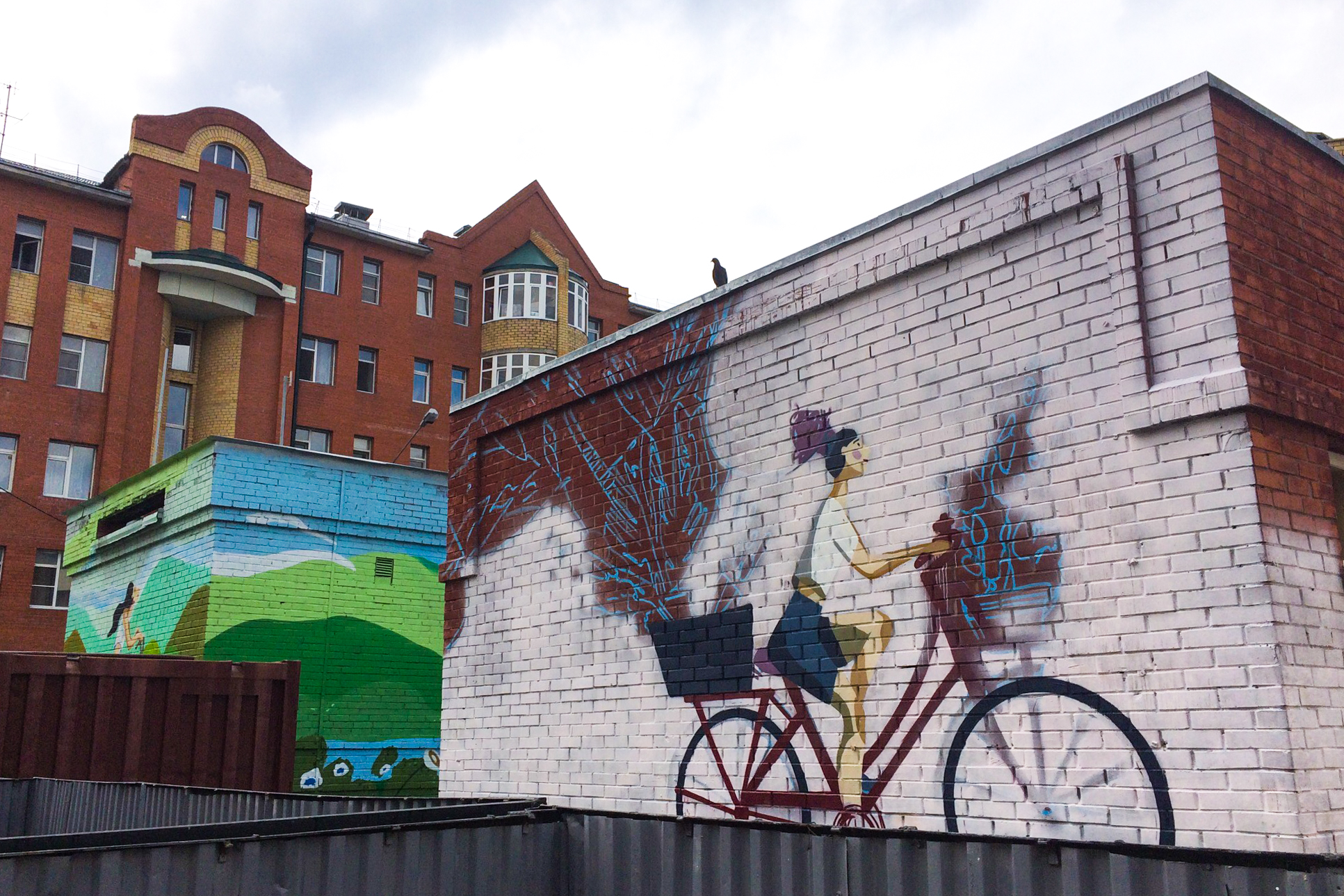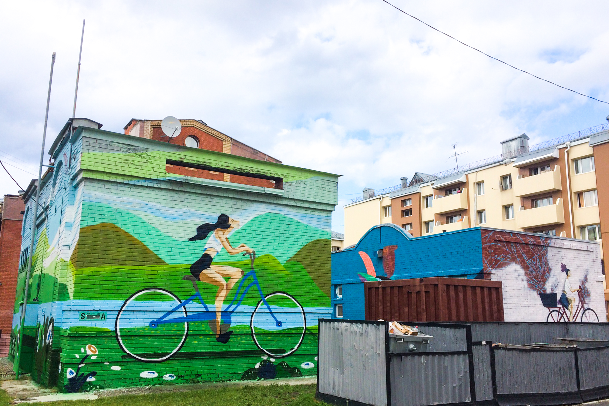 – Будет яркий рисунок, девушка на велосипеде. Просто приносим лето в город, хотя у вас лето теплее, чем у нас на Урале. Погода классная, сгораем потихоньку, загораем. Город тоже очень интересный, мы привыкли к тому, что здания однообразные, а у вас они все разные абсолютно, – рассказывает один из организаторов акции Евгений Рудых. – С каждым годом уровень адекватного восприятия растет. Сначала это воспринималось на уровне "зачем, для чего?". А сейчас собственники этих зданий сами на нас вышли и предложили разрисовать. Каких-то серьезных загвоздок или проблем с согласованием нет.