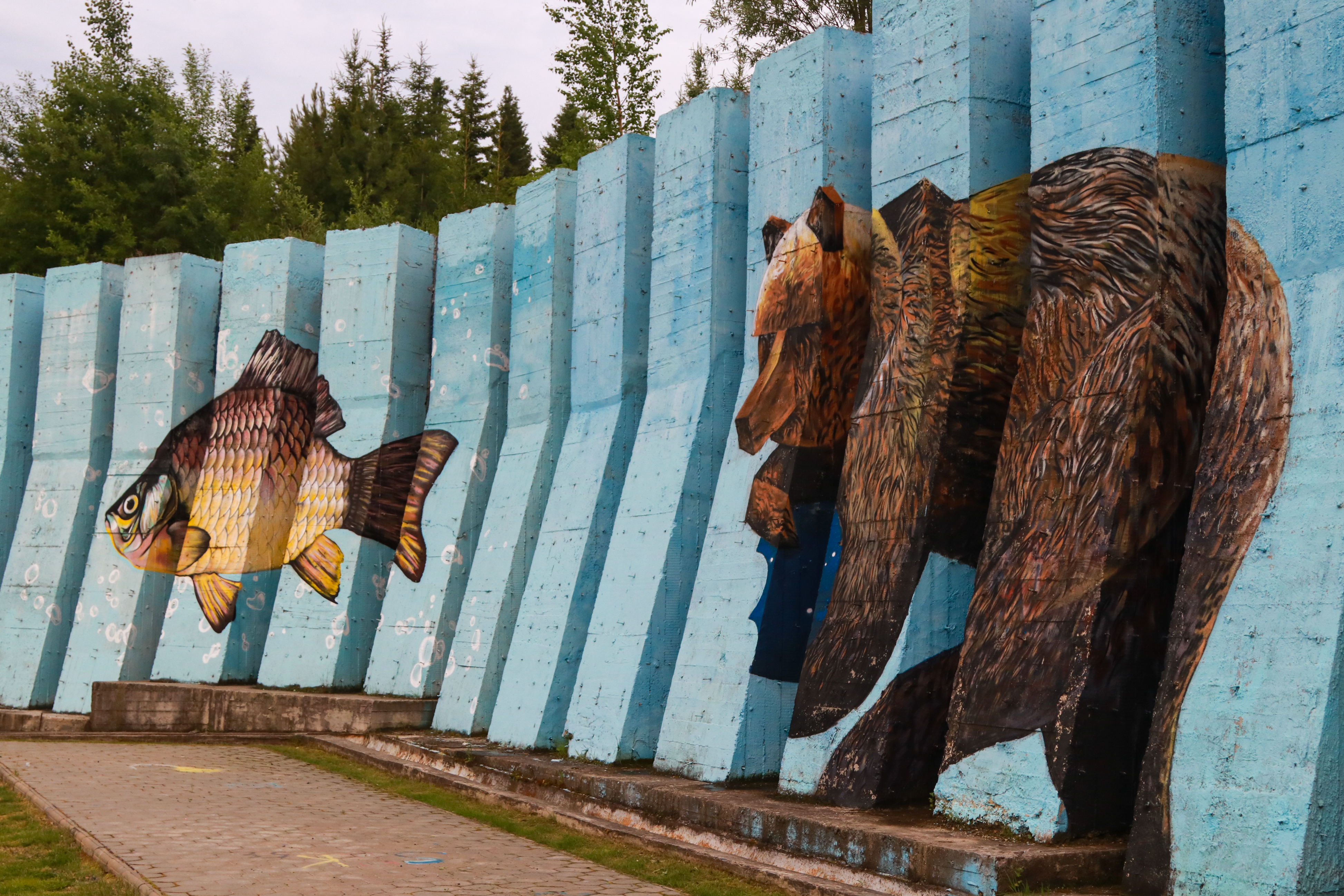 В больших городах проблема: есть точка А и точка Б, между которыми ты ходишь: голова вниз, побыстрее бы домой, включить телевизор. А тут идешь – была вроде серая стена, а завтра она стала ярко-оранжевой. Ты обращаешь на это внимание, туда, туда посмотрел – думаешь, а ничего себе, так у меня вроде бы город хороший и красивый. Начинают у человека какие-то отношения выстраиваться с городом. Ребята рисуют и говорят, что в день приходит по 10–15 человек, чтобы сфотографироваться на фоне медведя и рыбы. Она хоть и облезла, но люди все равно фотографируются. У нас целевая аудитория – весь город.