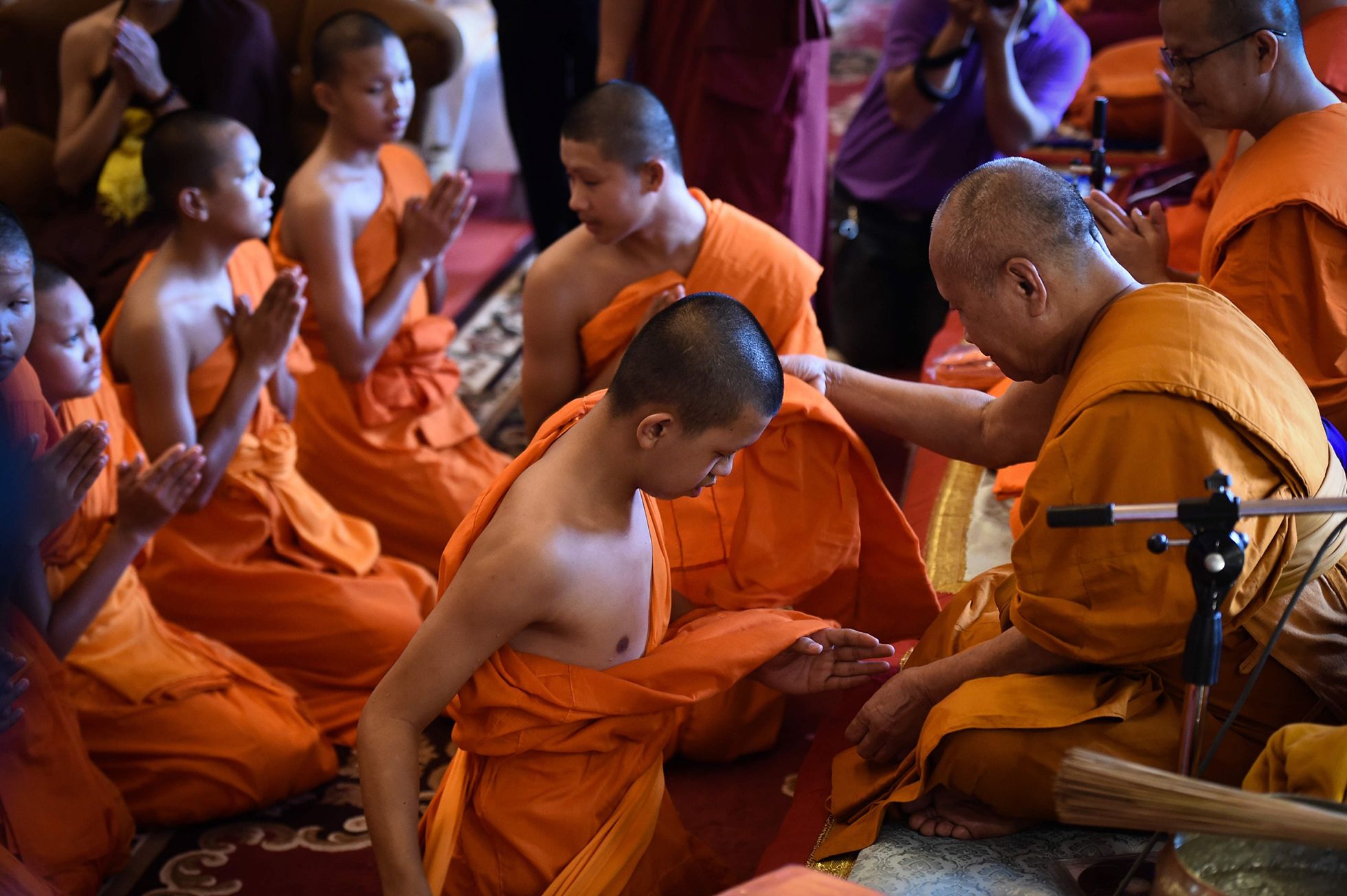 Спасенные из таиландской пещеры подростки прошли посвящение в монахи. Фотография