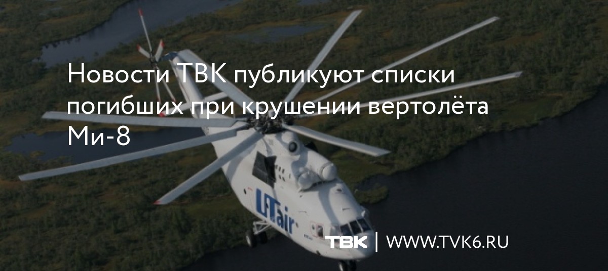 Новости ТВК публикуют списки погибших при крушении вертолёта Ми-8