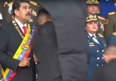 Церемония транслировалась в прямом эфире. Рядом с Мадуро стояли его жена, министр обороны, генпрокурор и военачальники. Мадуро прервал речь. В толпе началось движение, и трансляция на этом моменте прервалась. Когда Мадуро попытался продолжить речь, произошел второй взрыв. Президента окружили охранники, закрыли пуленепробиваемыми щитами и увели со сцены.