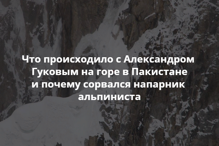 Сколько времени займет лечение петербургского альпиниста Александра Гукова, застрявшего на неделю на пакистанской горе Латок I, что стало причиной гибели его напарника Сергея Глазунова и почему вертолеты не могли вылететь за Гуковым на утро после сигнала SOS, хотя в горах была хорошая погода.