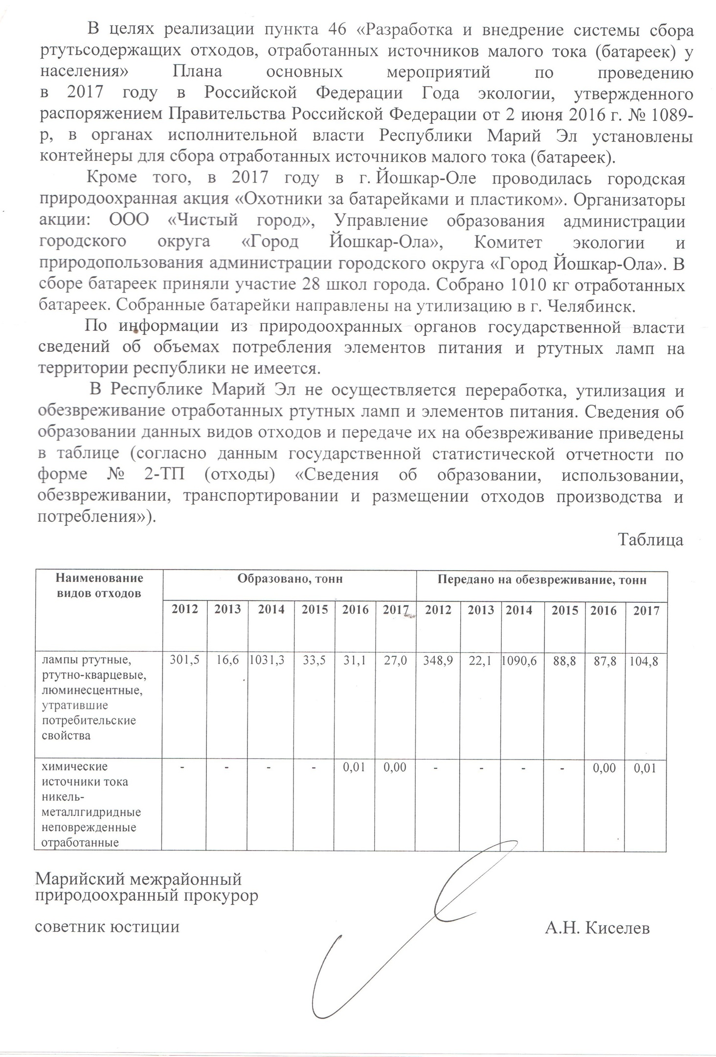 Так как ни Природоохранной прокуратурой, ни Министерством природных ресурсов, экологии и охраны окружающей среды Республики Марий Эл не ведется учет объемов потребления подобных ламп населением, так же, как не ведется учет преобразованным из них впоследствии ТБО 1-го класса опасности, то неизвестно, сколько десятков тон ежегодно попадают на легальные и нелегальные полигоны ТБО. В обоих случаях не приспособленных для захоронения ТБО 1-го и 2-го класса опасности, а значит, являющихся источником распространения токсичных веществ и тяжелых металлов, содержащихся в них, которые являются причинами целого ряда патологий.