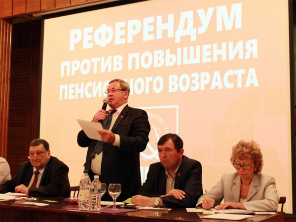 Алтайские коммунисты выступили с инициативой проведения референдума по вопросу пенсионного возраста kprf.ru В Центризбирком поступила уже третья заявка на проведение референдума по поводу повышения пенсионного возраста. На этот раз комиссия решила одобрить формулировки всех трех вопросов.