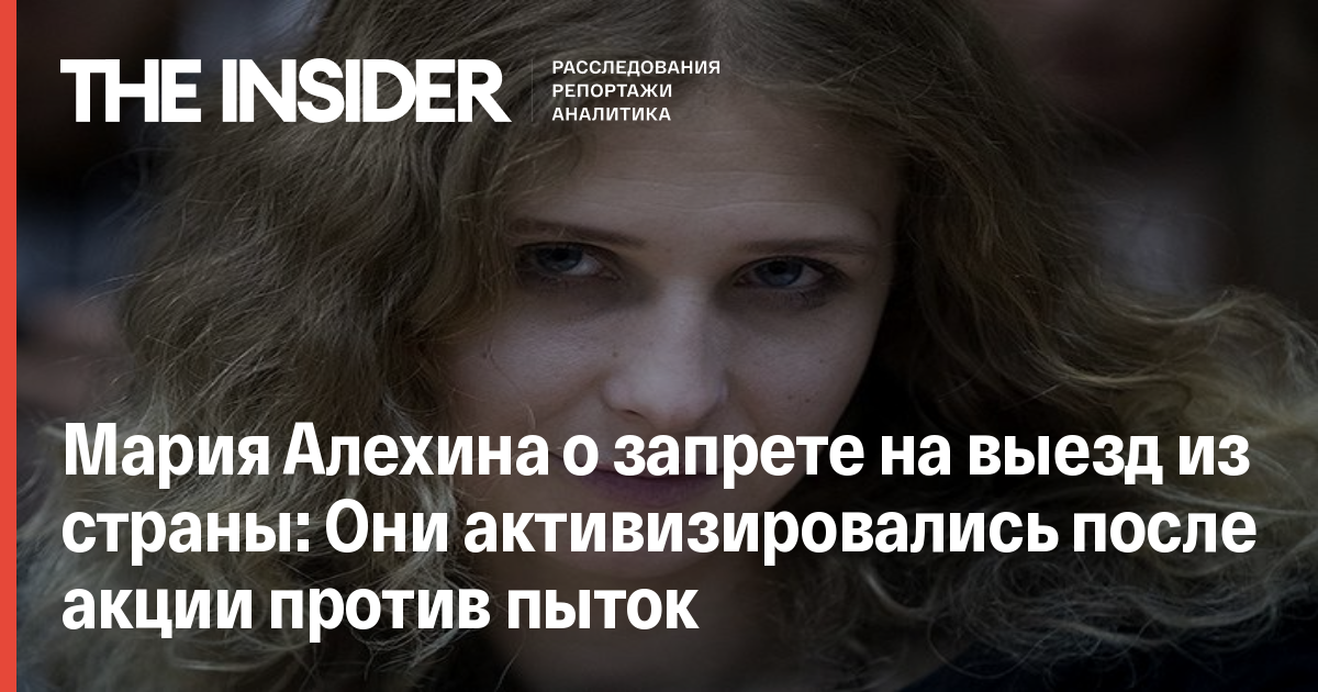 Участница группы Pussy Riot Мария Алехина связывает запрет на выезд из страны с проведенной ей накануне акцией против пыток. Об этом она рассказала The Insider.