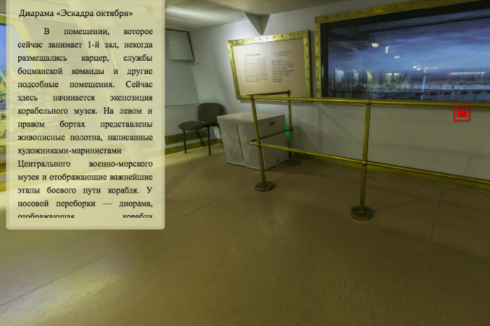На сайте можно не только рассмотреть интерьеры крейсера, но и почитать описания разных экспонатов.