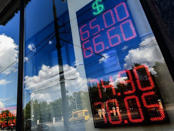 Табло курса валют с отражением неба / АГН "Москва" / фото: Иванко Игорь Утром 9 августа продолжилось падение курса рубля к доллару и евро. Хотя в течение дня российская валюта отыграла часть падения, все равно главные иностранные валюты прибавили примерно по 50 копеек. Индекс РТС, который рассчитывается через доллар, теряет почти 2%, на открытии хуже всего себя чувствовали акции «Аэрофлота», Сбербанка и ВТБ, но потом они даже смогли выйти в плюс.