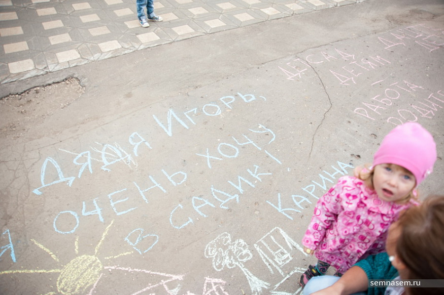 [На первом пикете было довольно много людей, а сегодня нет. Как думаете, почему люди не пришли?]. Так люди видят, что нет результата. Они стояли у филармонии с плакатами, кричали, скандировали. Проходящий мимо народ подходил и с сочувствующим взглядом вставал в очередь. У всех было одно мнение — с этим надо что-то делать, что-то должно сдвинуться. Прошла неделя — и ничего не изменилось. Они говорят, что построят шесть садиков. Ребят, ну, математика! Даже если вы в эти садики по 300 человек запихнете, вы все равно не решаете проблему очереди, которая сейчас образовалась.