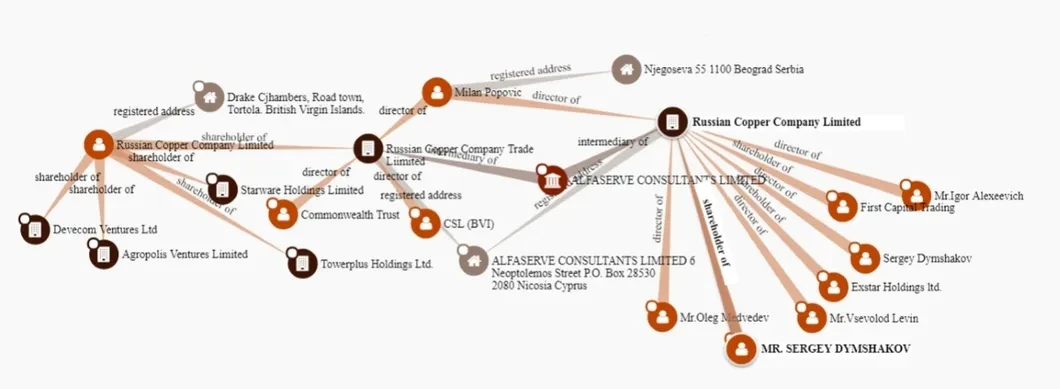 Как сообщают сербские СМИ, корни сотрудничества «медного сербского короля» со структурами Игоря Алтушкина уходят в 1990-е годы. По данным проекта Offshoreleaks, Милан Попович занимал пост директора компании Russian Copper Company Limited. Учрежденной в 2004 году компании повезло с бенефициарами. В их числе президент «РМК» Всеволод Левин, вице-президент по правовым вопросам «РМК» Олег Медведев и тогдашний президент «Уральского банка реконструкции и развития» (УБРиР) Сергей Дымшаков. Основатель «РМК» Игорь Алтушкин в списке бенефициаров не присутствует, зато есть загадочный «Mr. Igor Alexeevich», чьи инициалы совпадают с инициалами медного олигарха.
