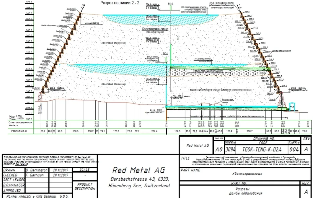 Но карты окончательно смешали загадочные чертежи с меткой швейцарской компании Red Metal AG, которые в январе 2018 года оказались в распоряжении активистов. Материалы эти датированы 23 ноября 2017 года и могут свидетельствовать, по мнению противников ГОКа, о том, что «РМК» так и не отказалась от первоначального проекта с хвостохранилищем (или же, по крайней мере, прорабатывала еще какой-то альтернативный вариант проекта). Активисты «Стоп ГОК» задали этот вопрос руководству «РМК» и надзорным органам, но ответа не получили. Потому и гадают челябинцы: что в реальности строят в Томинском за обнесенным колючкой забором?