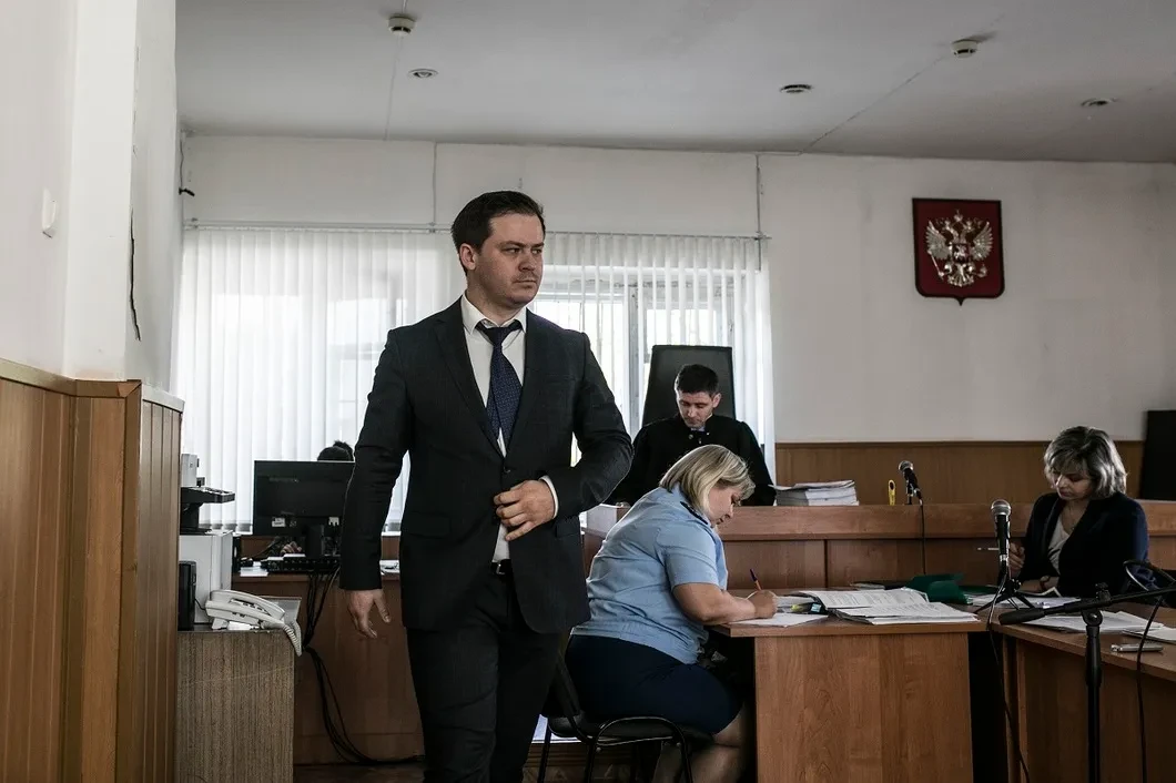 После просмотра судья Сосновского районного суда Денис Лекарь возвращается к заседанию. Подсудимых двое — Медведев и Асатуллин (именно его голос звучал в разговоре с оперативником).