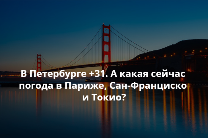 В Петербурге +31. А какая сейчас погода в Париже, Сан-Франциско и Токио?