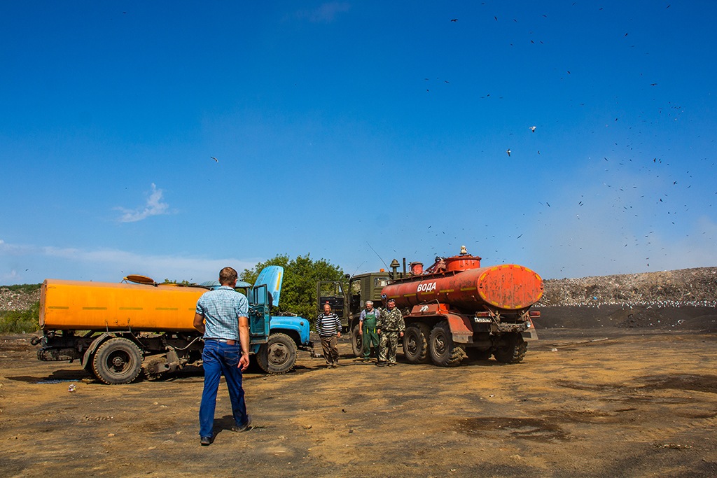 Конечно, мы можем обеспечить здесь охрану, как охраняют стратегические объекты. Но понятно, сколько это будет стоить. Конечно, можно охранять весь периметр. Но вы же понимаете, что значит охранять периметр 18,8 гектар? Вы же, когда машину оставляете на улице, понимаете, что ее тоже можно поджечь? Вы же не оставляете возле своей машины охрану. Потому что это в принципе считается не нормальным. Это отклонение от нормы. Всё же на норму рассчитано, на норму морали, на норму жизни, на здравый смысл. Наше предприятие полностью готово к самовозгоранию, к задымлению. Мы знаем, что нужно делать. Такое происходит периодически на полигоне. На площади 2−3 квадратных метра. Конечно, мы гасим всё это в зародыше. Это не сложно сделать, у нас все для этого есть. А этот пожар тушило более 50 человек: весь персонал полигона плюс с Гусинобродского перекидывали людей и механиков. Повторюсь, полигон готов полностью к работе, но к штатной работе, а не к поджогам. Подожгли еще в самом неприятном месте. Знали, где поджигать.