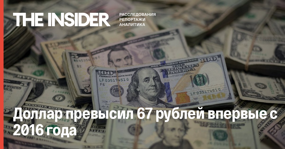 В первые минуты после открытия торгов на Московской бирже курс американской валюты превысил отметку в 67 рублей, подорожав на 39 копеек по сравнению с закрытием предыдущей сессии.