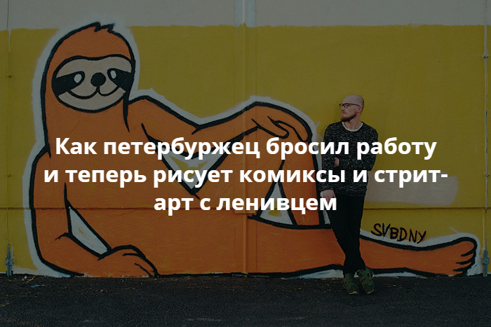 Петербургский дизайнер Константин Брилевский уже два года ведет паблик «Свободный от забот» с 36 тысячами подписчиков, где публикует комиксы с оранжевым ленивцем, пропускающим дедлайны и избегающим работы. Недавно Брилевский стал рисовать граффити со своим персонажем на «Приморской» — за одну из этих работ его задержали.