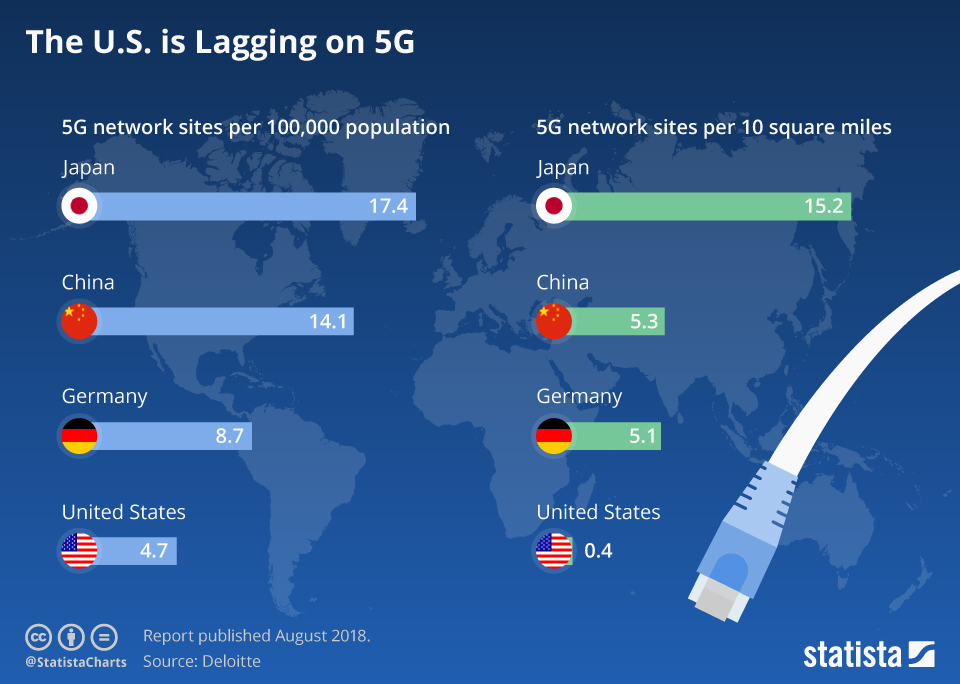 Когда мы говорим о технологиях будущего, на ум всегда приходят искусственный интеллект, роботы, дополненная реальность и виртуальная реальность. Но мало кто осознает, что не менее революционный эффект будет иметь и распространение сети 5G, которое станет «сдвигом технологической парадигмы, сравнимым с переходом от печатной машинки к компьютерам», пишет MIT Technology Review. Выгоду из прорыва извлечет и бизнес — новая сеть позволит компаниям проводить совещания с голограммами и 3D-моделями, предоставит много новых возможностей для телекоммуникационных компаний, увеличит долю интернет-пользователей (обеспечив к 2027 году доступом более 90% мирового населения) и многое другое (подробно на английском). Особенно это касается тех стран, в которых 5G развивается больше всего - Японии, Китая, Германии и США.