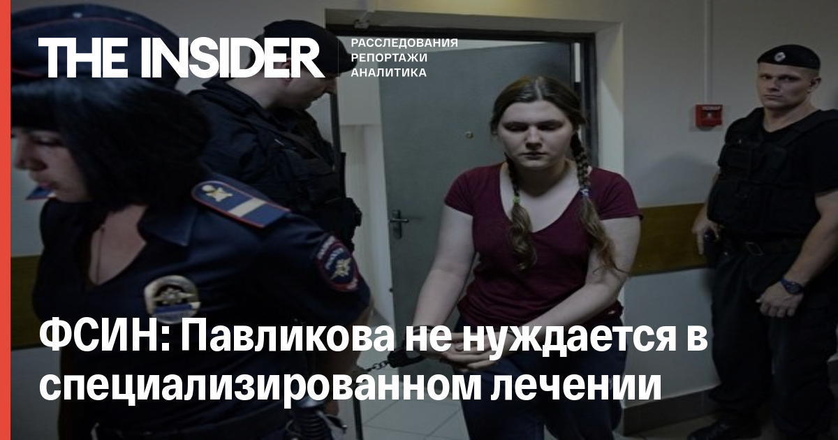 В ФСИН отметили, что медицинское обеспечение Павликовой «организовано в соответствии с требованиями законодательства РФ в сфере охраны здоровья».