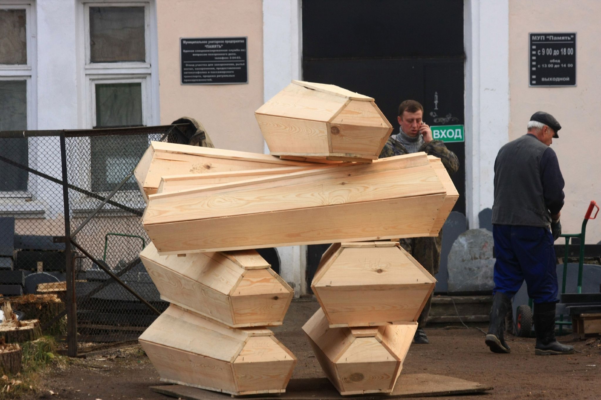 Виктор Бартенев / Интерпресс / PhotoXPress Новые гробы в Подпорожье в Ленинградской области, 2 ноября 2010 года