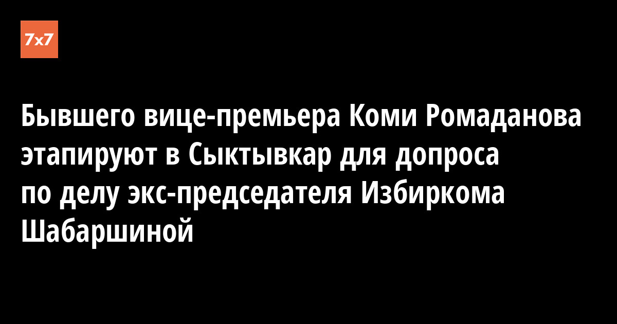 Бывшего вице-премьера Коми Константина Ромаданова, осужденного по делу Гайзера на семь лет колонии строгого режима, этапируют в Сыктывкар, чтобы допросить по уголовному делу экс-председателя Избиркома Коми Елены Шабаршиной. Такое решение 14 августа принял Сыктывкарский городской суд, на заседании присутствовал корреспондент «7x7».