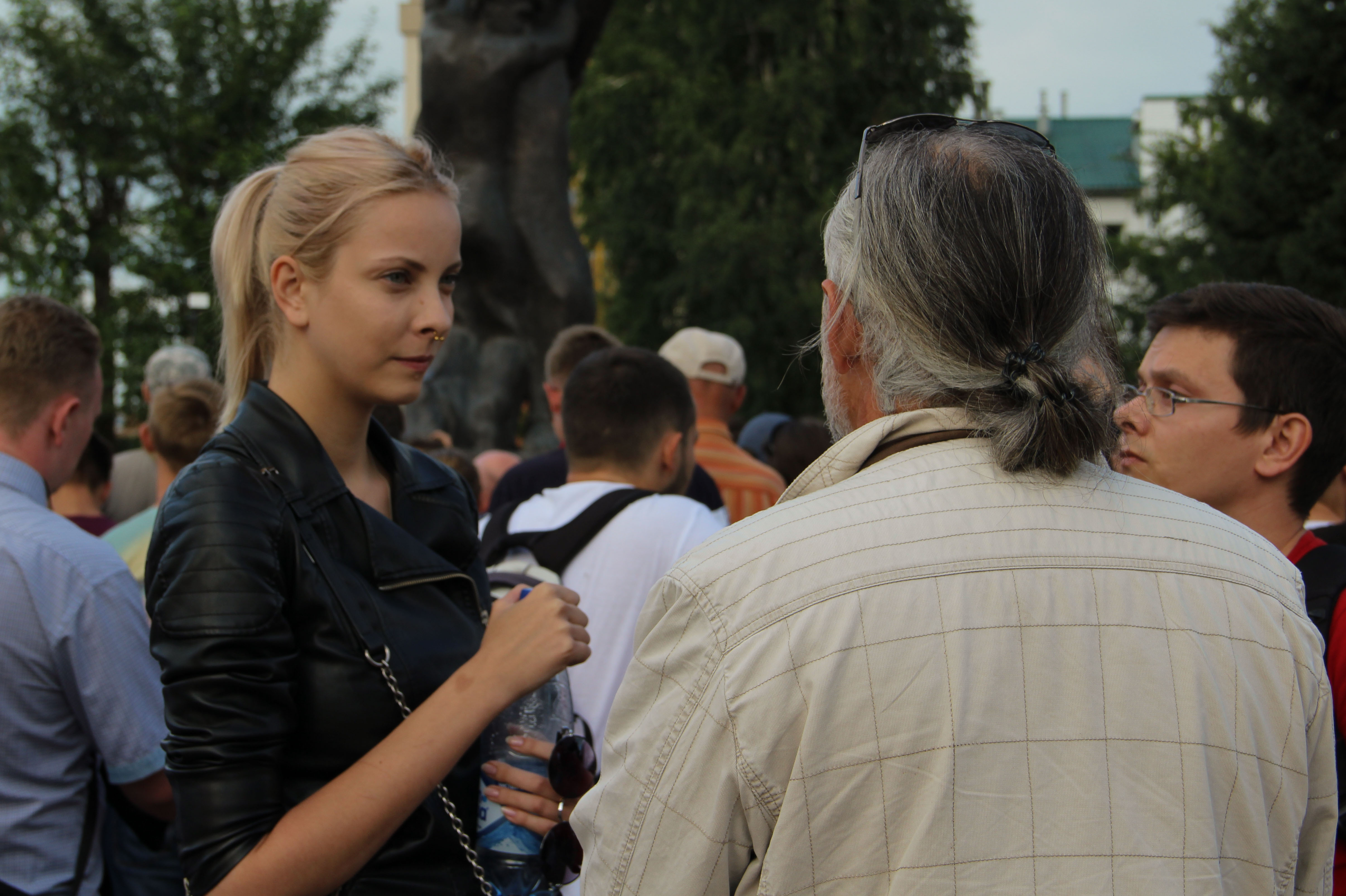 Около 200 человек собрались у памятника "Жертвам политических репрессий". Полицейские не проявляли агрессии, но внимательно наблюдали за собравшимися. В основном на акцию пришли молодые люди, которые считают происходящее с обвиняемыми в экстремизме Марией Мотузной, Даниилом Маркиным, Андреем Шашериным и Антоном Ангелом несправедливым.