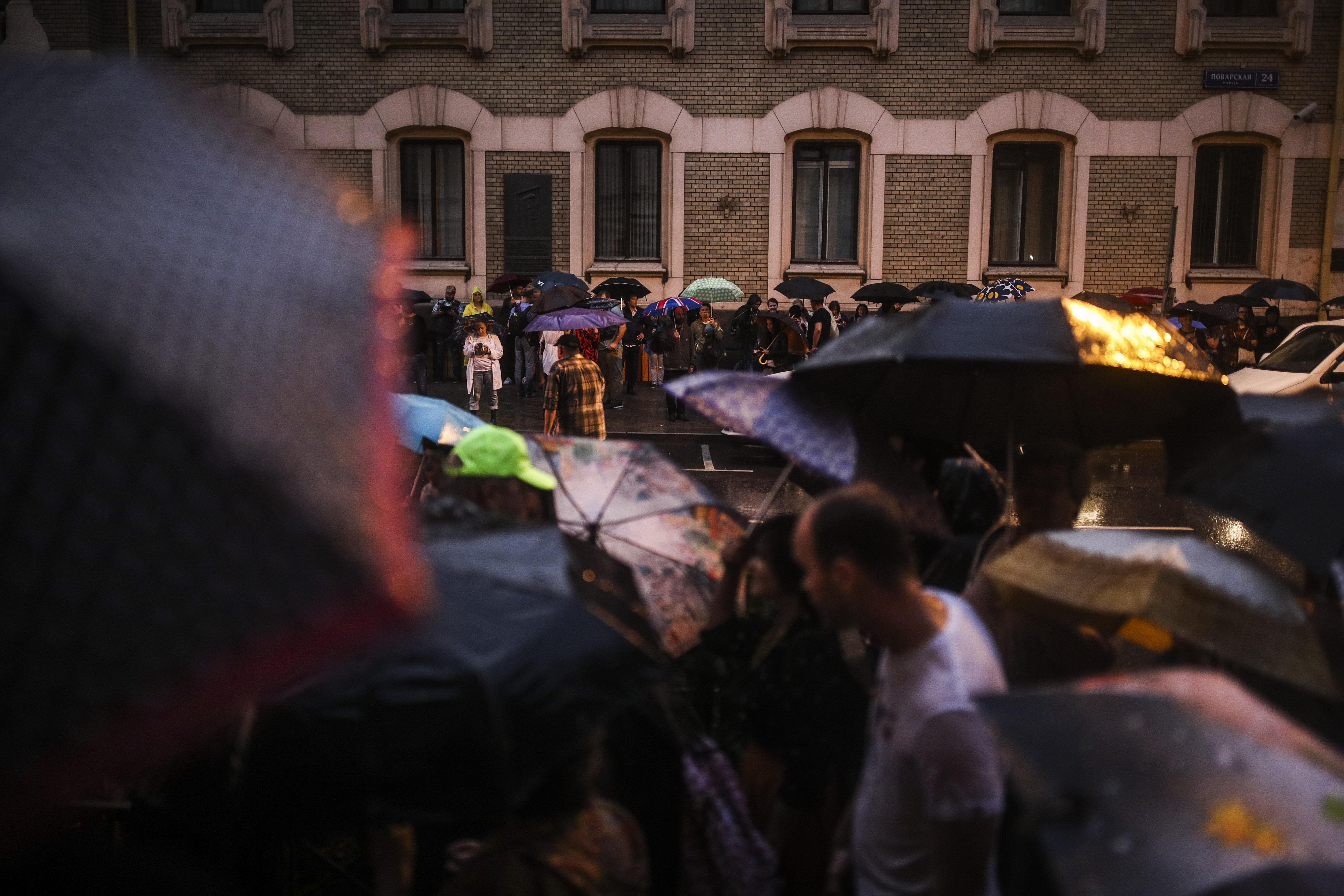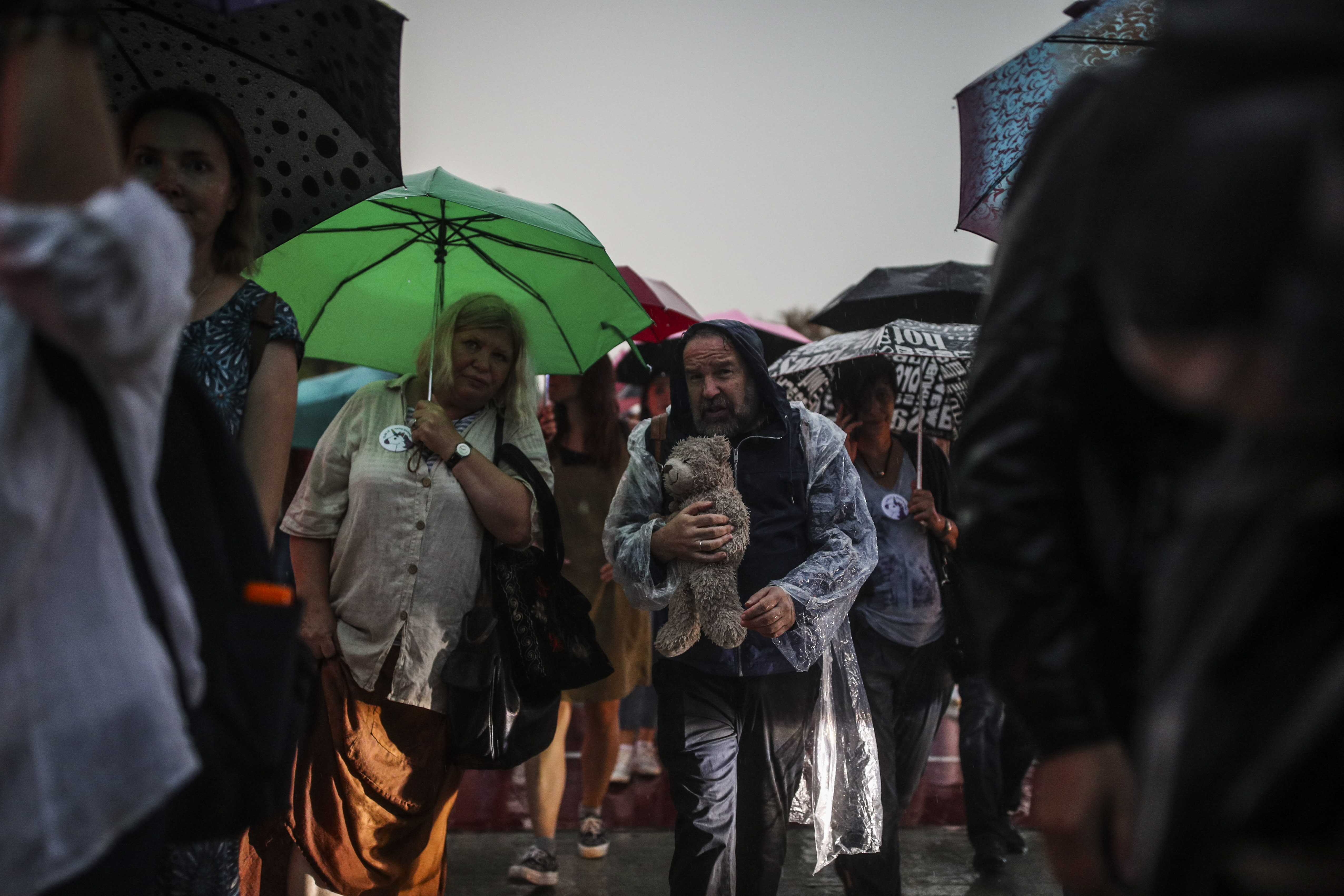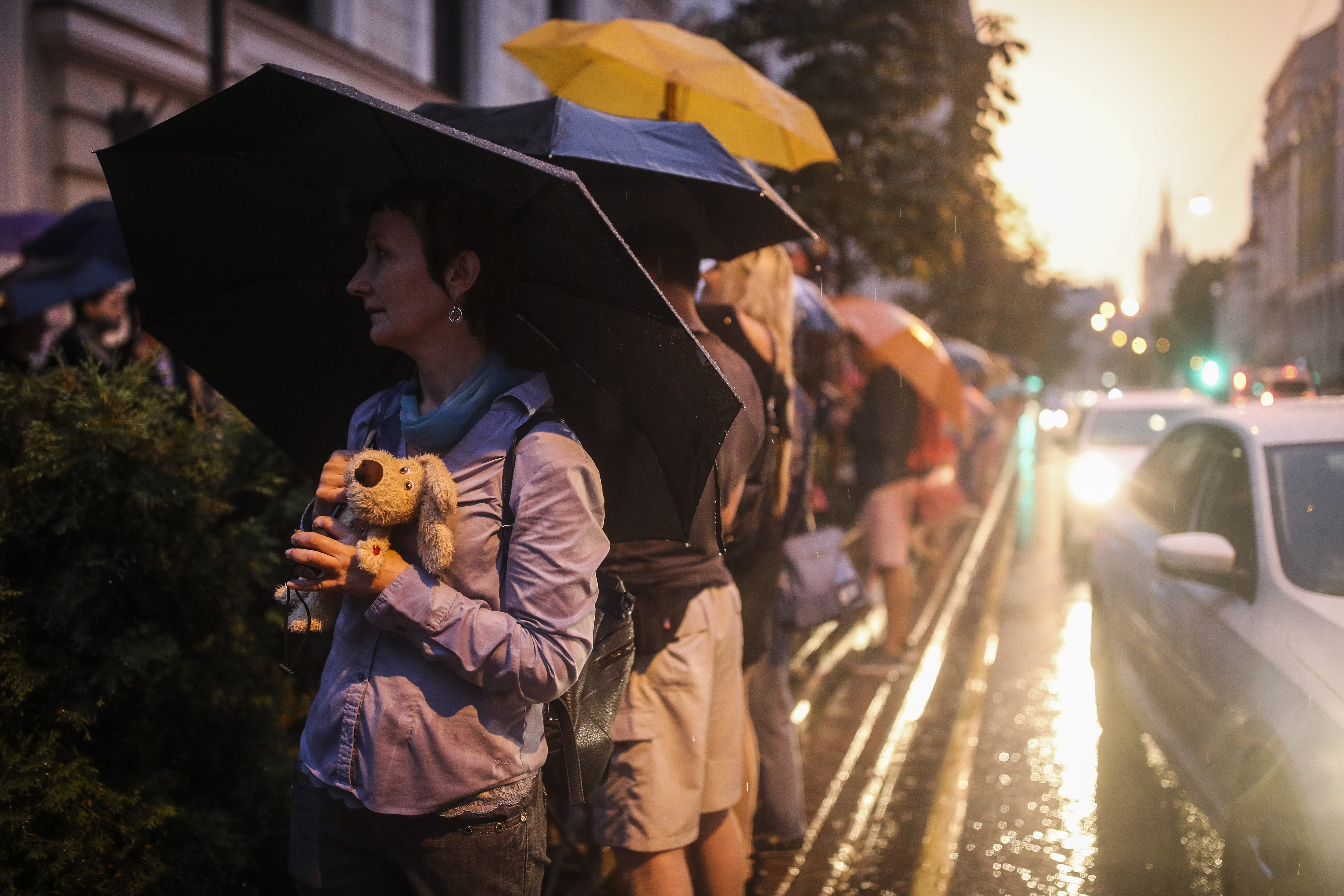 В Москве под проливным дождем прошел «Марш матерей» в поддержку обвиняемых по делу «Нового величия». Евгений Фельдман сфотографировал участников акции для «Медиазоны».