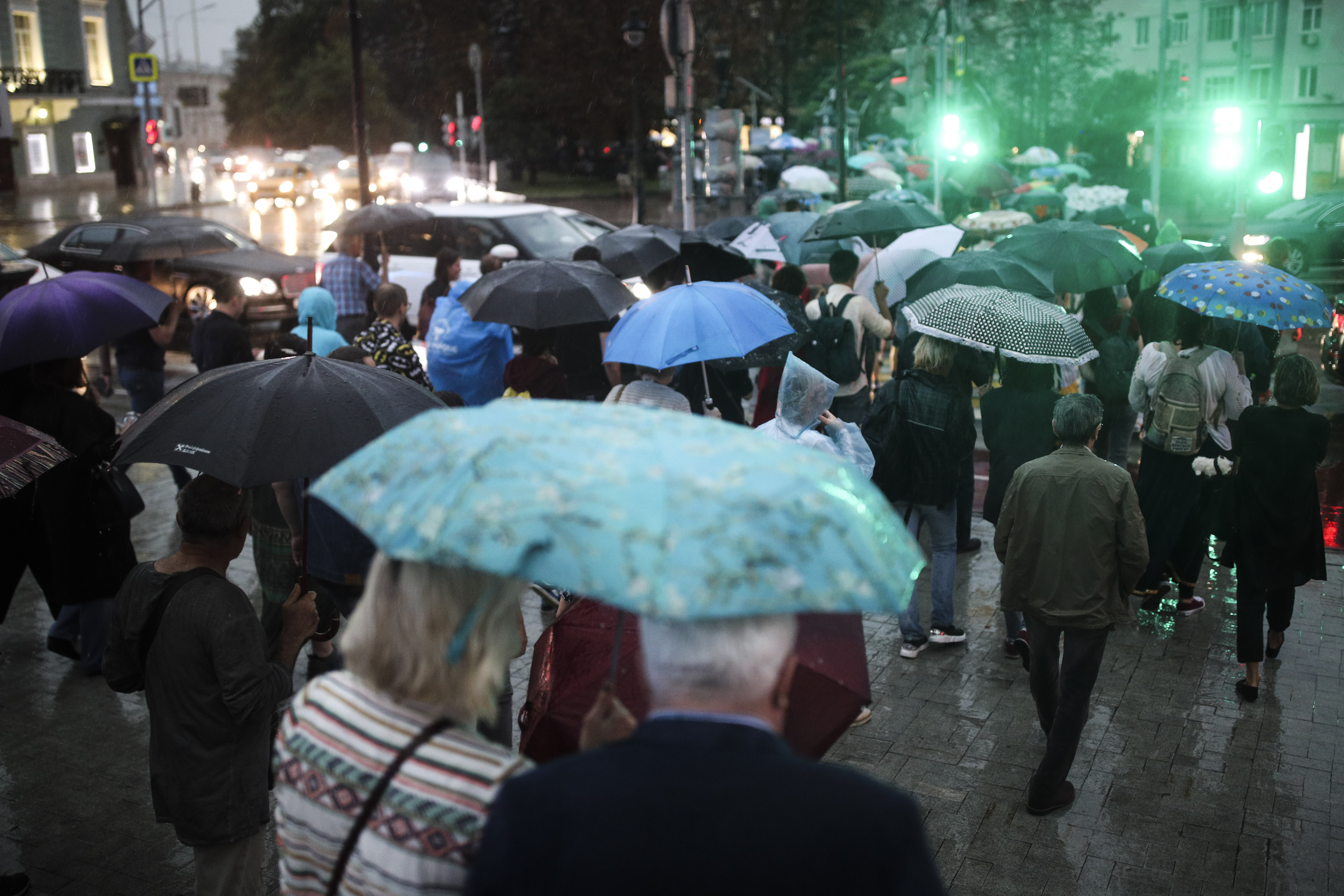 За пять минут до начала акции на центр города обрушился сильнейший ливень. Часть митингующих пережидала его в подземном переходе, другая — видимо, перепутав Новопушкинский сквер и Пушкинскую площадь — осталась на противоположной стороне Тверской.