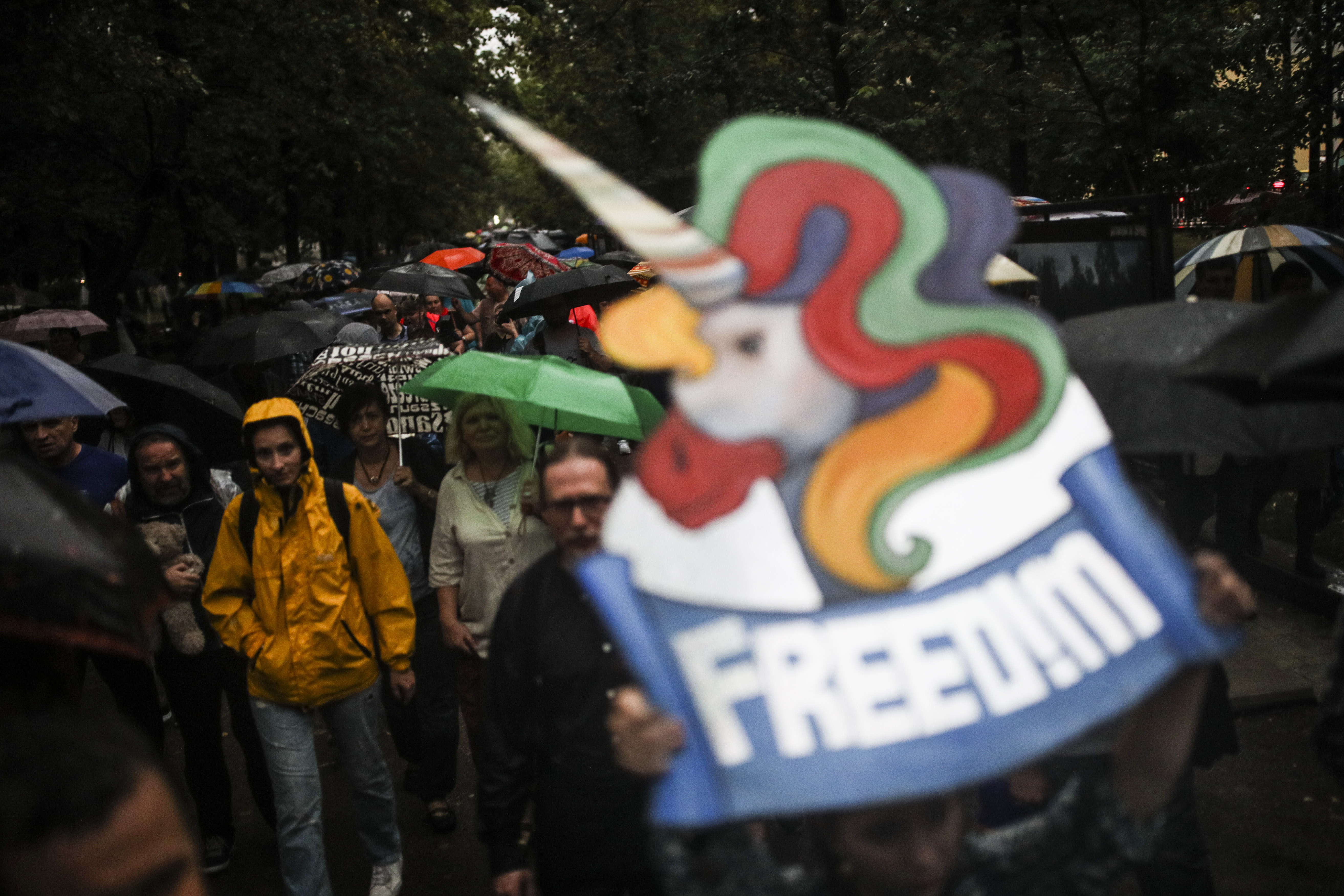Марш под дождем. Акция солидарности с обвиняемыми по делу «Нового величия»