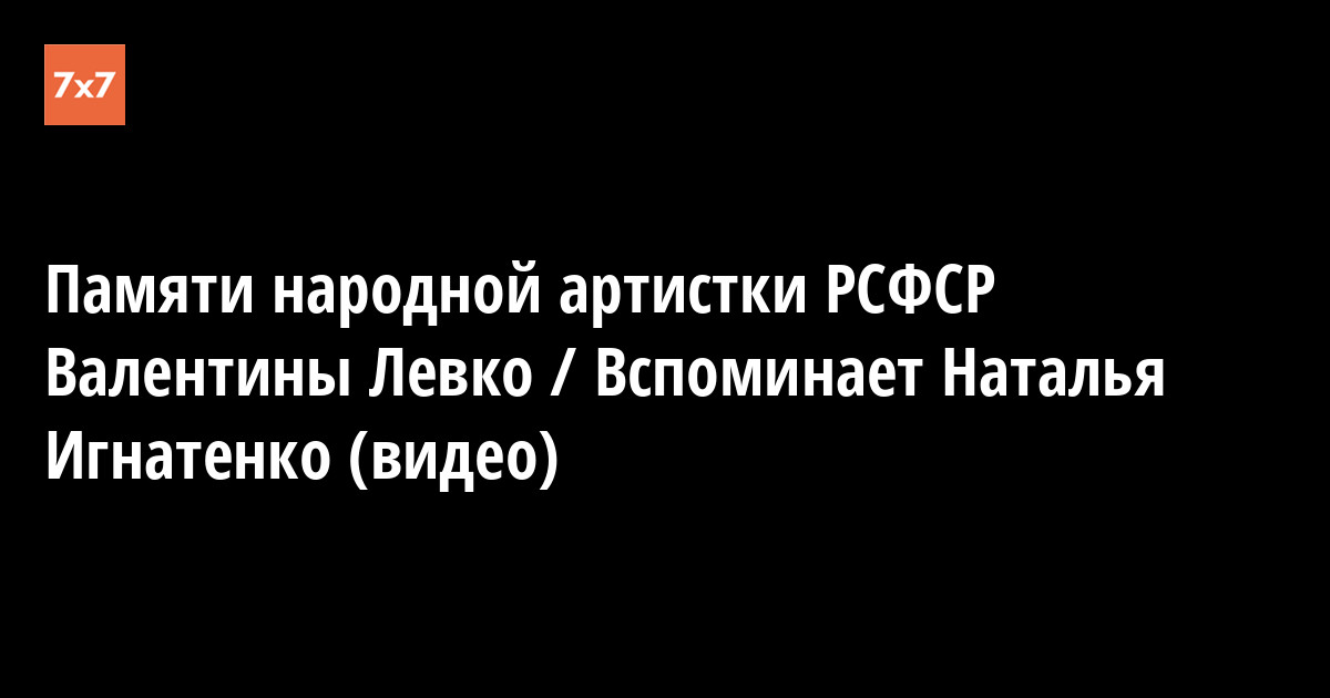 Памяти народной артистки РСФСР Валентины Левко / Вспоминает Наталья Игнатенко (видео)