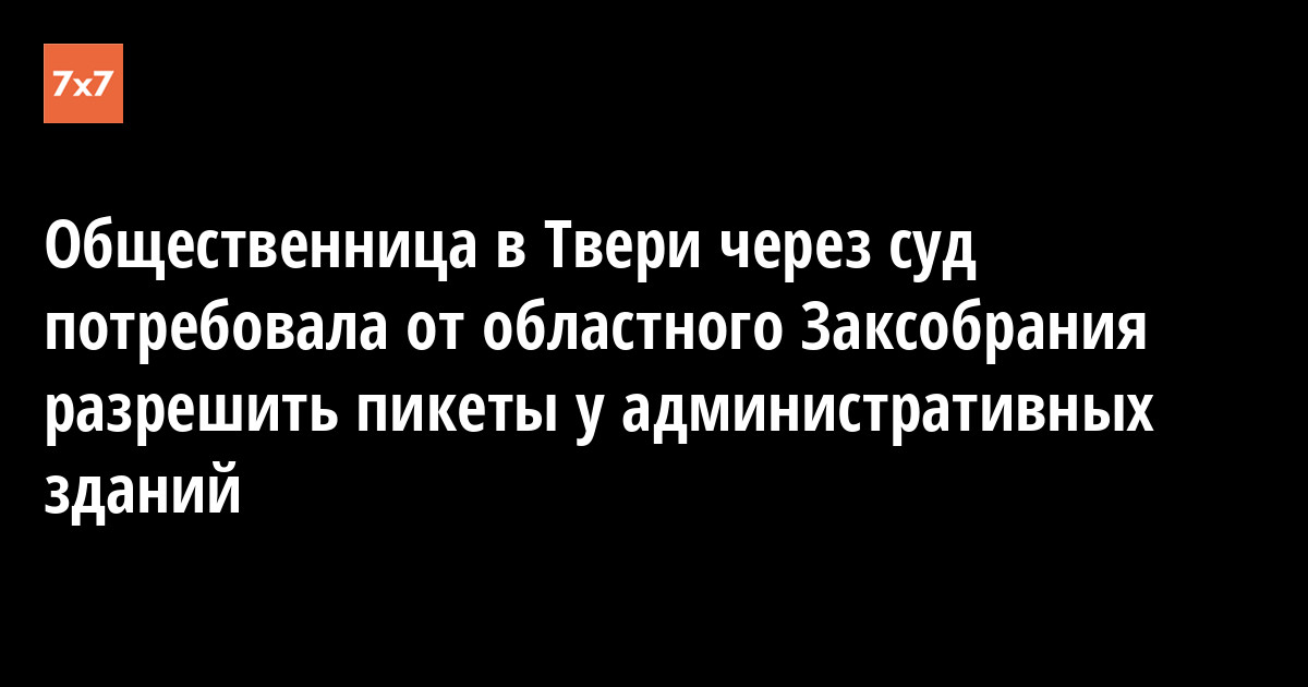 Активистка Татьяна Джинчвеладзе подала иск в Тверской областной суд на Заксобрание Тверской области. Она требует признать незаконным запрет на пикеты у зданий органов власти. Как следует из базы судопроизводства, заседание по иску состоится 27 августа.