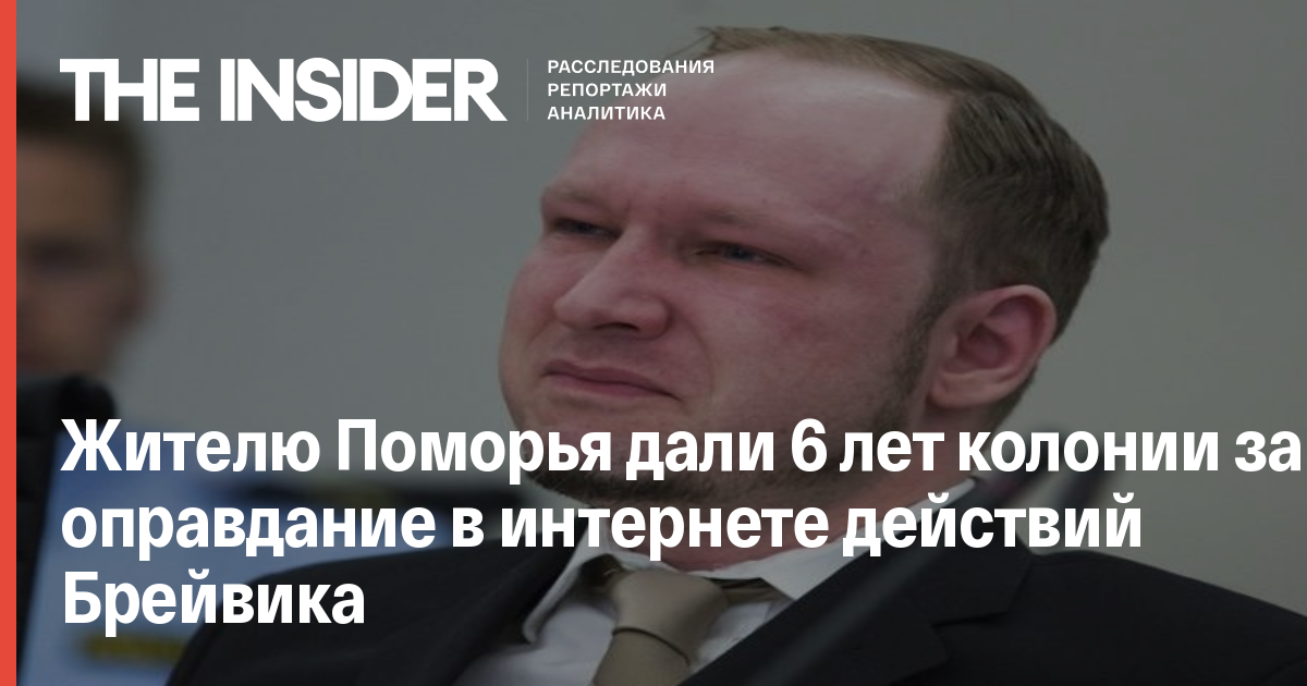 Жителю Поморья дали 6 лет колонии за оправдание в интернете действий Брейвика