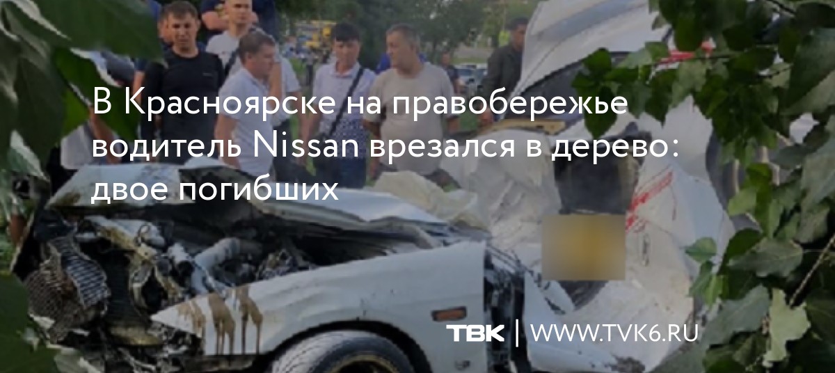 В Красноярске на правобережье водитель Nissan врезался в дерево: двое погибших