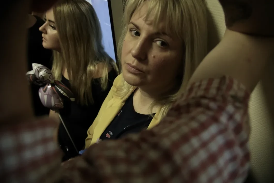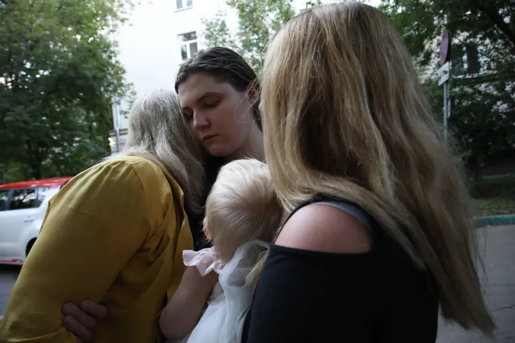 Маме Ани Юлии в перерыве становится не по себе. Кто-то предлагает анальгин и влажные салфетки. Она отказывается. Старшая дочь стоит рядом и машинально гладит ее по плечу.
