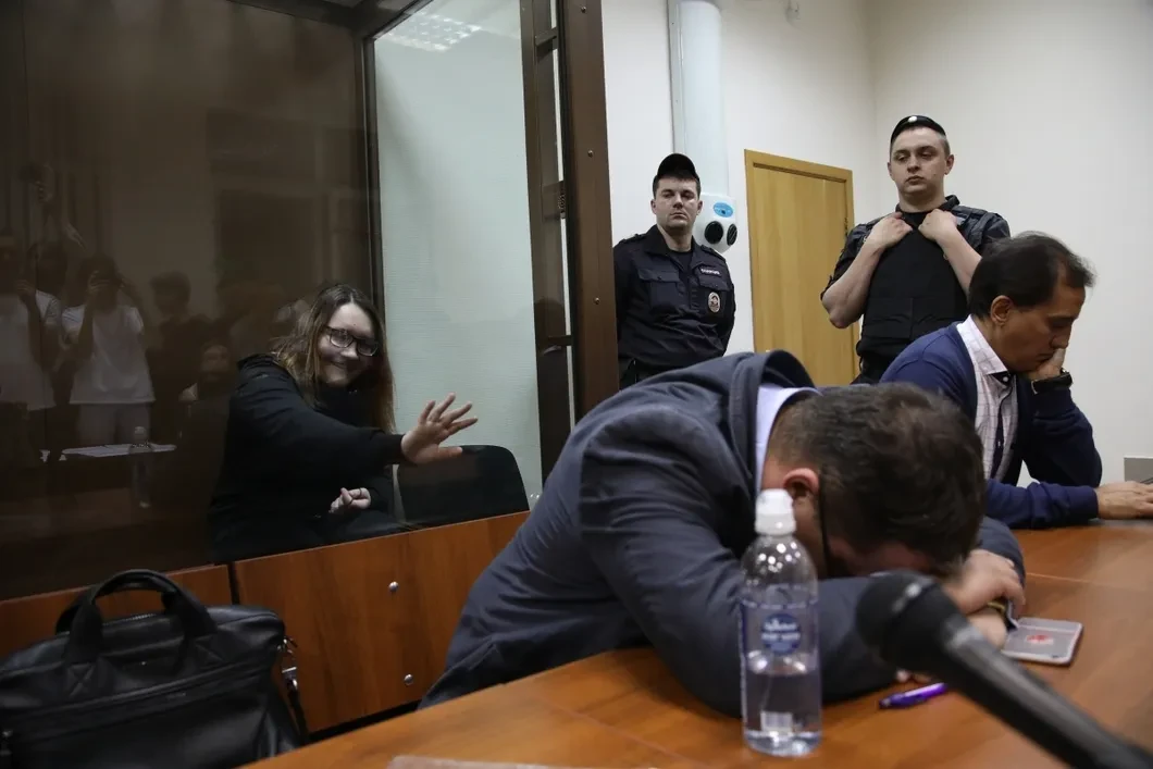 Адвокат Ольга Карлова передает судье и кипу медицинских заключений. « У Ани за время нахождения в СИЗО пролапс сердечного клапана из первой степени перешел во вторую. На МРТ головного мозга есть угрожающие изменения…, но я не могу оглашать все диагнозы публично, это врачебная тайна…»