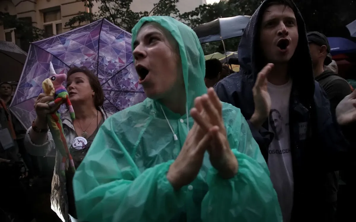 Анна Наринская, одна из организаторов марша, берет слово: «Если бы не дождь, вы бы видели, что я сейчас плачу. У нас нет каких-то глобальных требований — мы просто хотим, чтобы детей выпустили из СИЗО. У нас такая маленькая надежда. Мне говорят: «Ты еще перед ними на колени встань». Я встану».