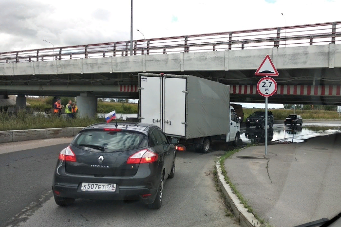 «Ну что, как в старые добрые времена»: под «мостом глупости» в Петербурге застряли две «газели» за два дня