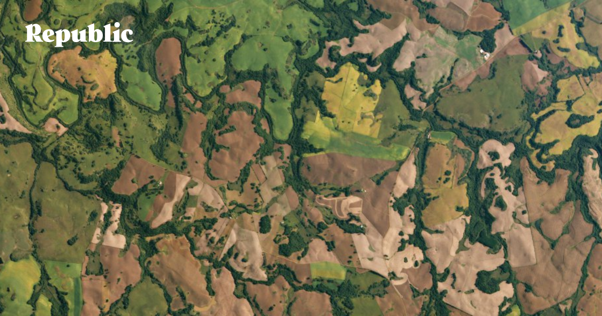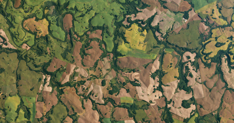 Спутниковый снимок Descartes Labs плантаций тростникового сахара в Бразилии