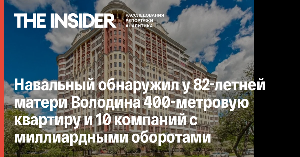 Навальный обнаружил у 82-летней матери Володина 400-метровую квартиру и 10 компаний с миллиардными оборотами