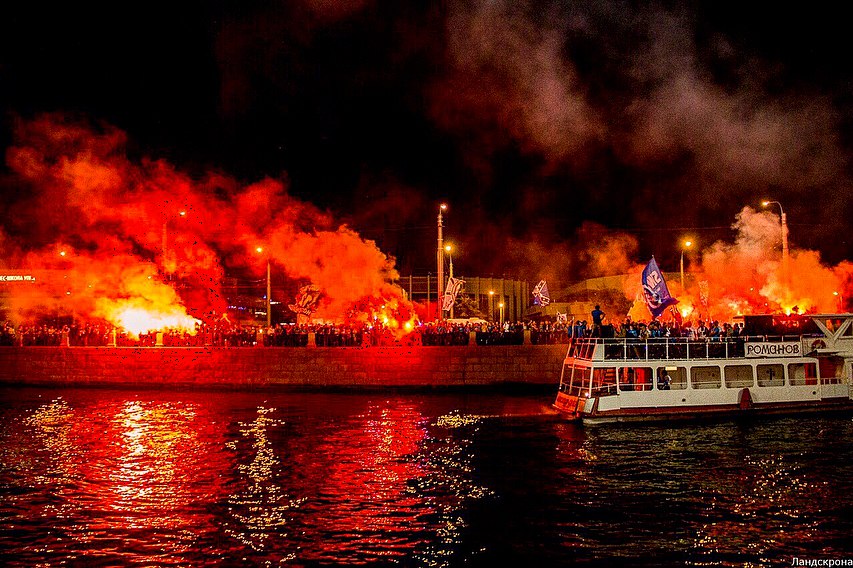 Вечером 16 августа фанаты «Зенита» собрались на Ждановской набережной сразу после победы петербургского клуба над минским «Динамо». Болельщики жгли файеры и скандировали «Спасибо!».
