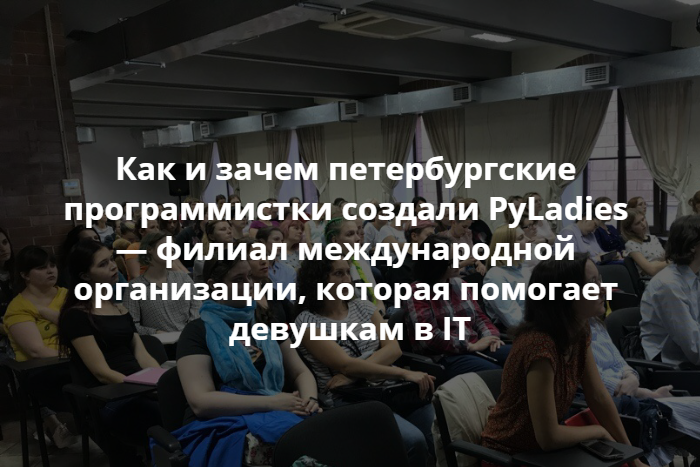 В середине 2018 года группа программистов и программисток из Петербурга организовали в городе филиал PyLadies — мировой инициативы, которая помогает девушкам в разных странах изучать язык программирования Python и становиться частью IT-сообщества. В августе организаторы провели первую встречу с лекциями сотрудниц «Яндекса» и Social Quantum, на которую пришло больше 100 человек.