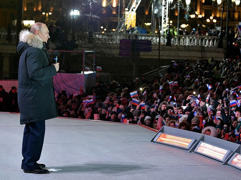 В.Путин на митинге / kremlin.ruРаботу Дмитрия Медведева положительно, как показывает опрос ФОМа, теперь оценивает не 24, а 27% россиян. А рейтинг «Единой России» вырос с 32 до 34%.