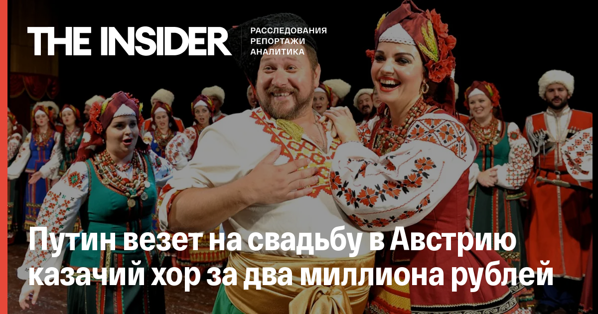 На свадьбу главы МИДа Австрии Карин Кнайсль вместе с президентом России Владимиром Путиным приедет государственный Кубанский казачий хор, сообщает Руская служба «Би-би-си». Поездка в Австрию будет стоить от 1,8 млн рублей.