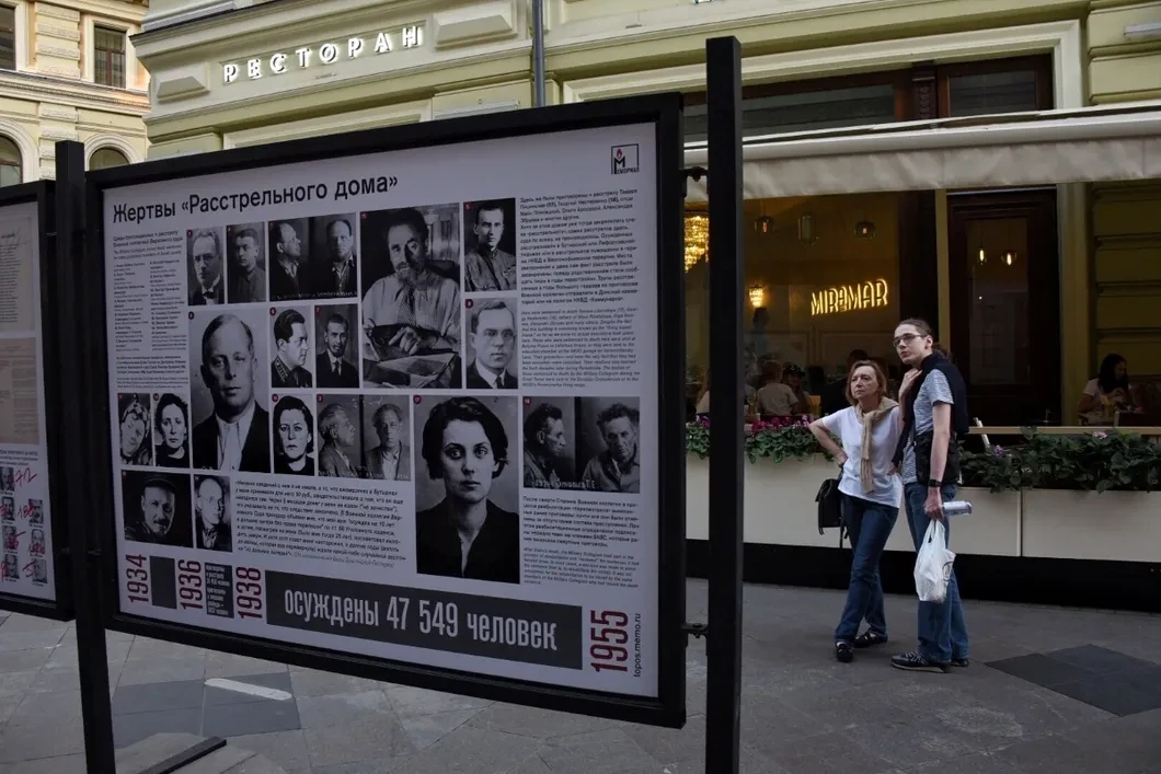 «Мемориал» установил стенды с портретами жертв Расстрельного дома, в котором планируется открытие парфюмерного бутика