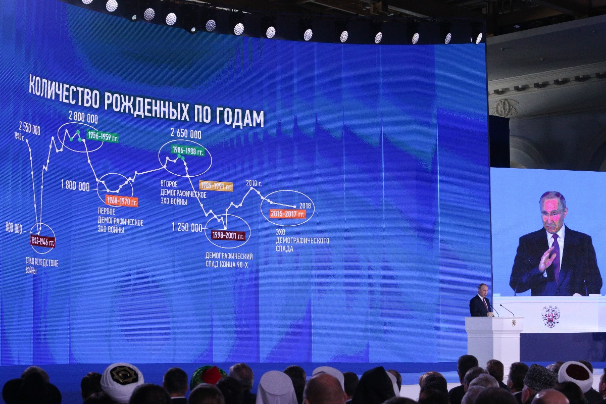 Владимир Путин представляет будущий майский указ во время послания Федеральному собранию. Фото: ТАСС
