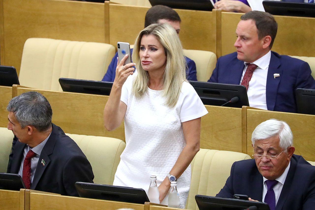 Член комитета Госдумы РФ по делам национальностей Елена Бондаренко фотографирует спикеров (или делает селфи)