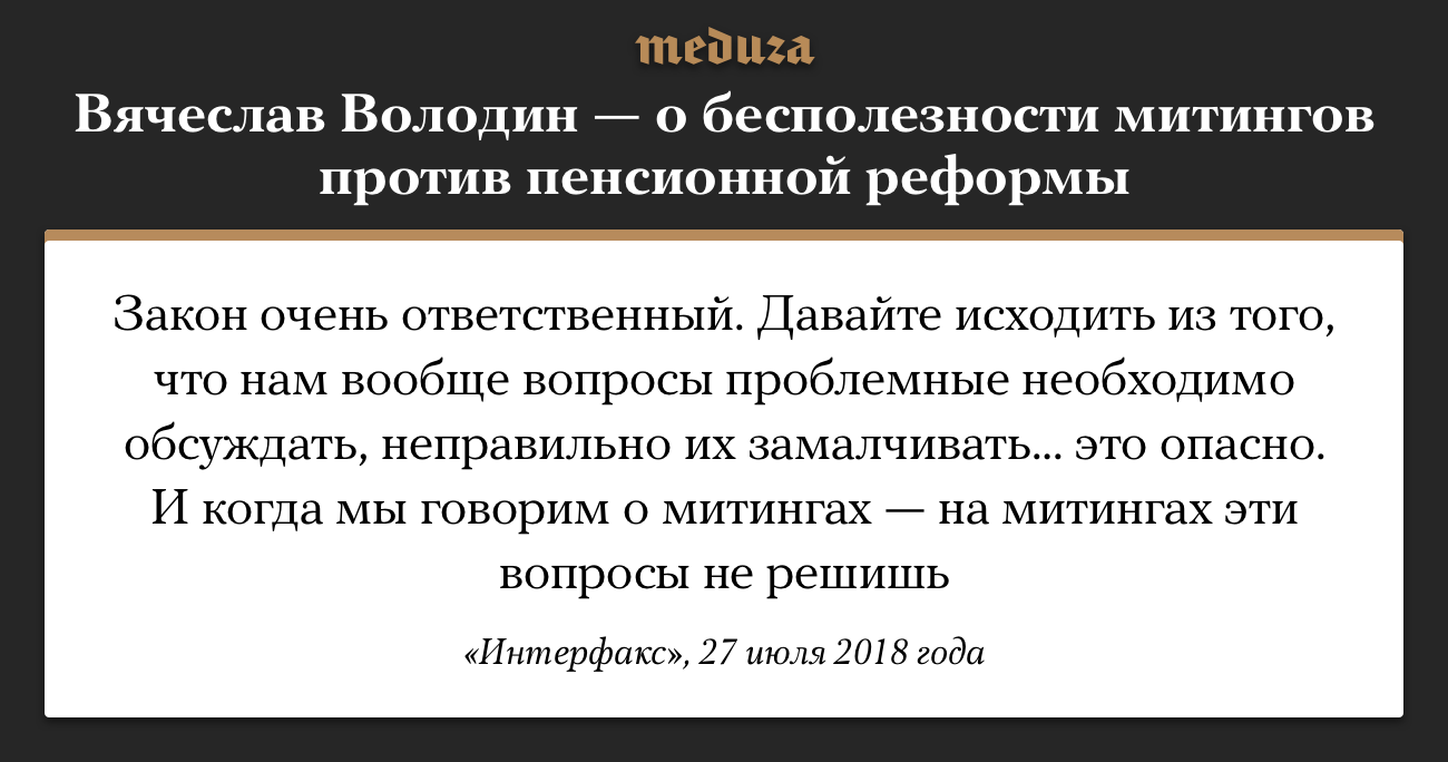 Володин благодарит за интерес, проявленный к законопроекту о пенсионной реформе.